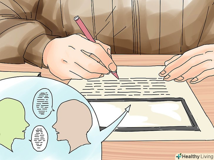 Використовуйте розмовну мову.як правило, в журналістиці не використовується занадто складна мова. Також намагайтеся уникати кліше і сленгу. Підписи повинні відповідати таким же основним вимогам до мови. Складайте підписи в розмовному стилі, ніби ви показуєте фото своєму родичу. Обходьтеся без штампів, жаргону і абревіатур. Не використовуйте без необхідності занадто складні слова.[19]- Якщо фото доповнює статтю, використовуйте для підпису той же стиль, в якому написана стаття.[20]