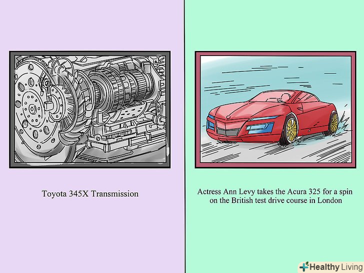 - Приклад повного і неповного пропозиції в підписі: повне - "Актриса Енн Леві прокотилася на Acura 325 під час тест-драйву в Лондоні", неповне – "Тест-драйв Acura 325 в Лондоні".