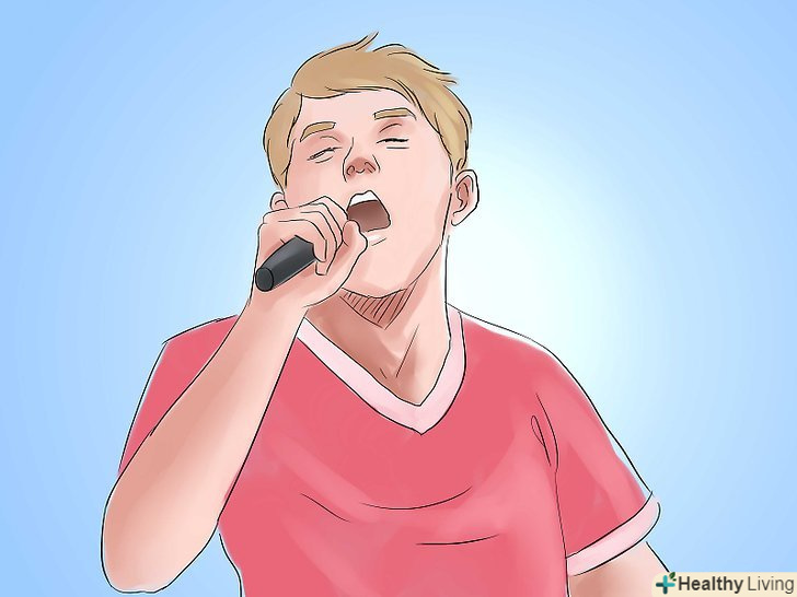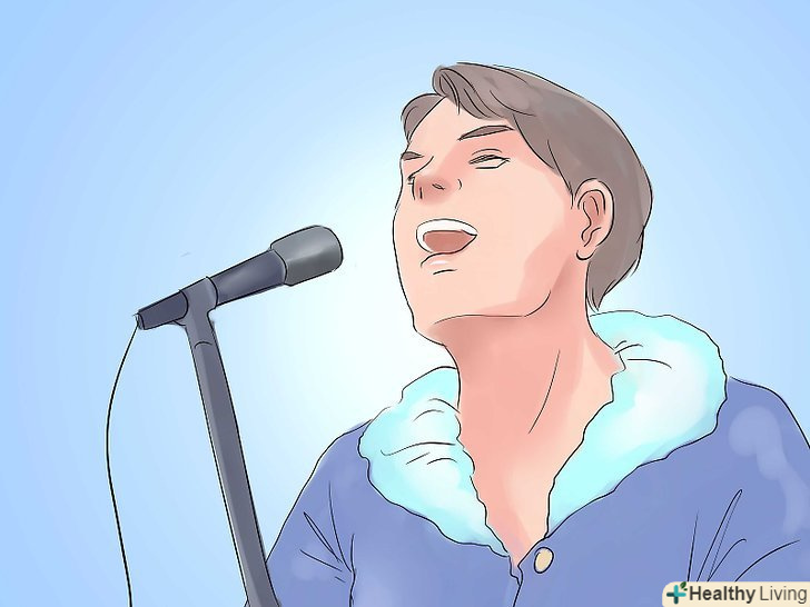 Спробуйте заспівати на позіханні. Згадайте оперних співаків. Коли ви так співаєте, гортань опускається вниз, що дозволяє співати вище без зайвого тиску. Відмінний спосіб відчути, як співати без напруги.- Ці методи не часто використовуються безпосередньо на виступах. Але їх використання під час тренувань з гамами дозволить вам зловити відчуття співу з опущеною гортанню. Однак, немає правил забороняють вам використовувати ці методи у вашому вокалі, як це робили багато співаків.