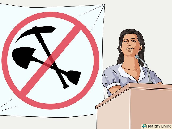- Виступайте проти забруднення джерел води. Недостатнє державне регулювання часто призводить до того, що багато водойм піддаються забрудненню з боку промислових підприємств. Дізнайтеся, чи є у вашій місцевості організації або групи людей, які домагаються виправлення ситуації і допомагають зберегти чистоту води у Вашому регіоні.[9]