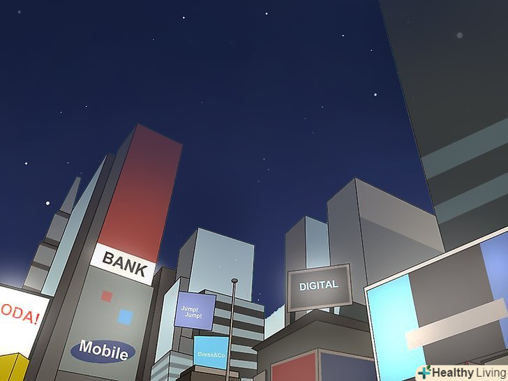 Пам'ятайте, що Вогні нічного міста завадять вам знайти планети на небі.тому найкраще розглядати нічне небо в сільській місцевості. Якщо ви знаходитесь в місті, знайдіть відкритий простір, де вам не буде заважати світло, яке відбивається від стін будівель.[3]