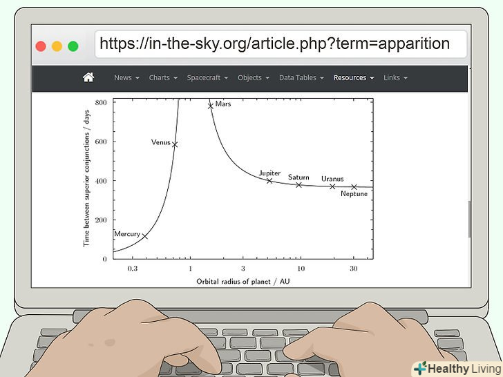 Визначте період видимості тієї чи іншої планети.період видимості-це часовий проміжок, протягом якого планета видно на нічному небосхилі. Період видимості може простягатися від декількох тижнів до двох років. Період видимості планет можна знайти в астрономічних каталогах.