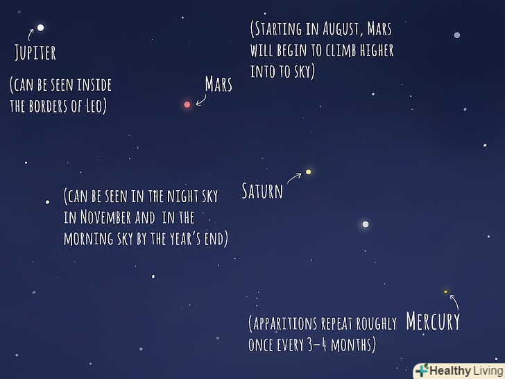 Астрономічні об'єкти постійно змінюють своє розташування. На нічному небі ви можете побачити зірки, сузір'я, планети та інші тіла. Неозброєним оком можна побачити п'ять планет (завдяки їх яскравості): Меркурій, Венеру, Марс, Юпітер і Сатурн. Ці планети видно практично завжди, за винятком коротких проміжків часу, коли вони підходять дуже близько до Сонця. Ви не зможете побачити відразу всі планети – існують графіки їх появи на нічному небі. Ця стаття розповість вам, як знайти і розпізнати планети на небі.