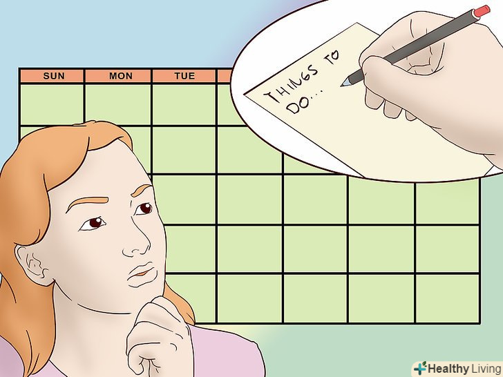 Правильно плануйте час .чим старше стає людина, тим більше на нього покладають відповідальності. Якщо неправильно розпоряджатися часом, то виникає ризик підвищеного занепокоєння. Скористайтеся наступними порадами:[14]- Розділяйте глобальні плани на менші завдання. Наприклад, плануючи написати відгук про книгу, ви повинні прочитати книгу, обміркувати ідеї і зробити записи, скласти план, написати чорновий варіант, внести правки і віднімати готовий текст.