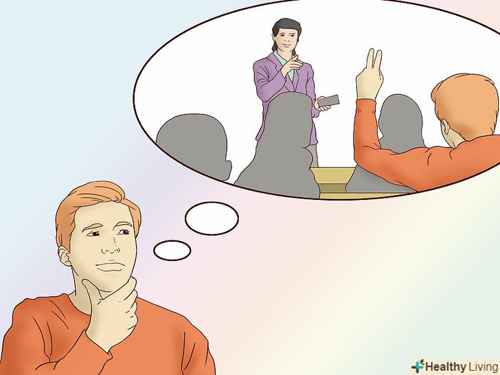 Ведіть докладний конспект лекцій.Записи допомагають зосередитися на словах викладача і відволікають від тривожних думок. На початку лекції завжди діставайте зошит і ручку, щоб записати всю важливу інформацію.[22]- Якщо вам складно вирішити, що необхідно записувати, то спробуйте малювати в зошиті, щоб не думати про тривожних думках.