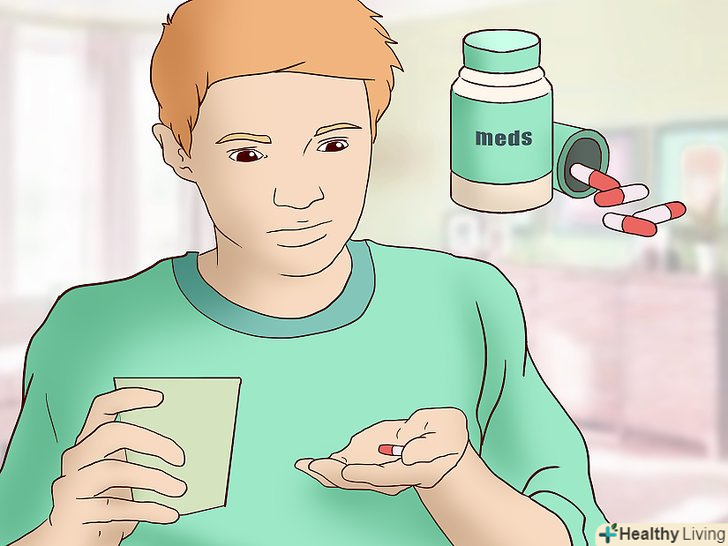 Тримайте ліки при собі.якщо напади паніки часто призводять до того, що ви пропускаєте або заважаєте проводити уроки, то лікар може виписати спеціальні таблетки, які допоможуть взяти себе в руки при неконтрольованих ситуаціях або полегшити симптоми. Ліки слід приймати перед школою або під час уроків відповідно до приписів.- Обговоріть з лікарем, чи варто вам приймати таблетки. Зазвичай в разі нападів паніки доктор може виписати антидепресанти, які необхідно приймати тривалий час, або бензодіазепіни (або заспокійливі препарати), які приймають в момент нападу, щоб полегшити симптоми за 30-60 хвилин.[4]