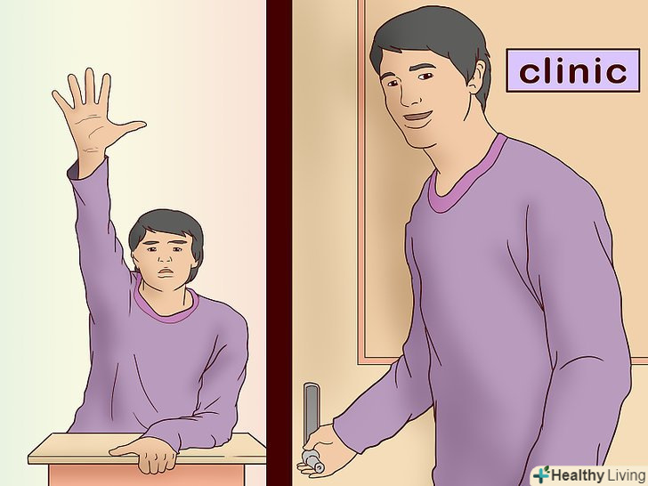 План дій. [2] повідомивши вчителю про можливі напади, продумайте спосіб показати, що вам необхідно вийти, який дозволить вчителю спокійно продовжити урок. Постарайтеся тихо покинути клас і спробувати взяти себе в руки, не заважаючи вчителю і учням.- Обговоріть, як краще попередити вчителя. Наприклад, можна встановити зоровий контакт з учителем і показати очима в бік дверей. Також можна запитати: "Дозвольте вийти?"