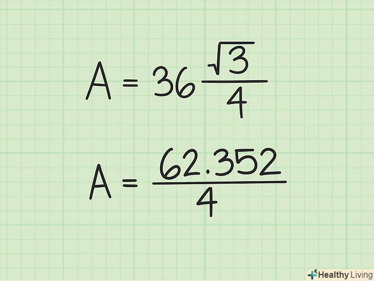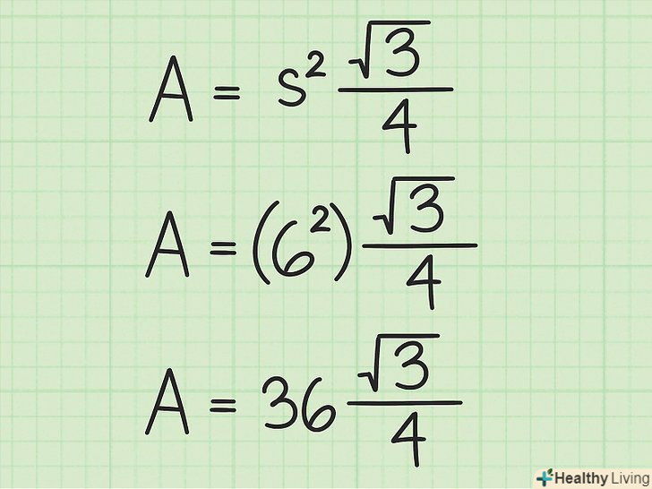 У формулу підставте значення сторони трикутника. воно підставляється замість. Потім зведіть значення в квадрат.