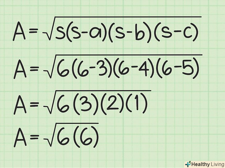 Перемножте значення, що стоять під знаком кореня.потім з отриманого результату витягніть квадратний корінь. Ви отримаєте площу трикутника (в квадратних одиницях виміру).- У нашому прикладі: