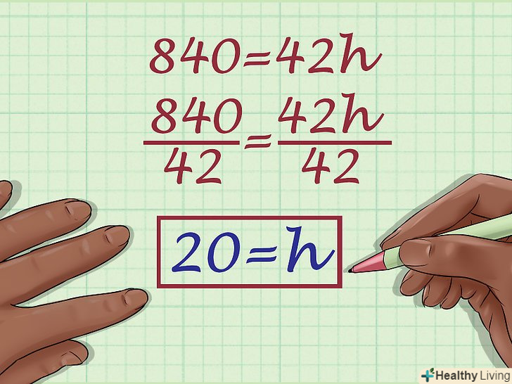 - Приклад: площа основи дорівнює 42 м2, тому формула запишеться так: