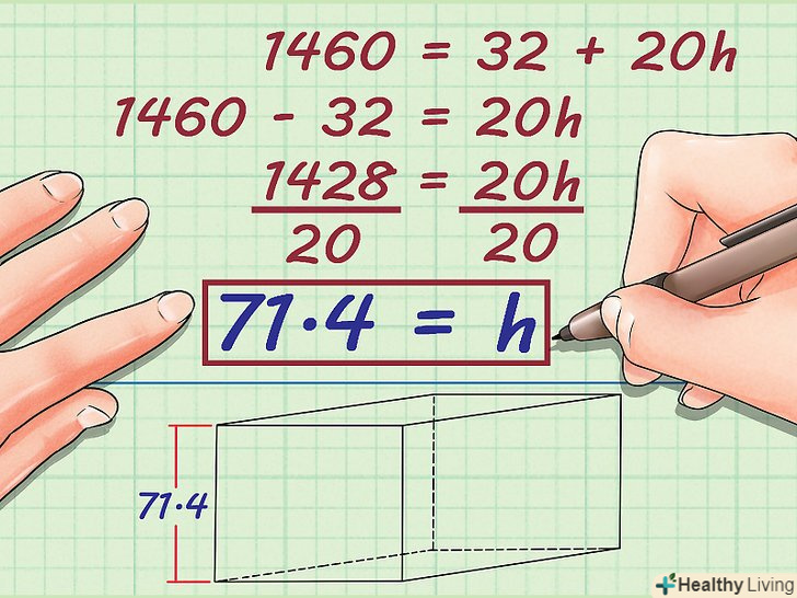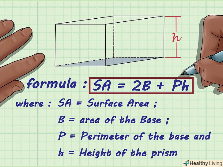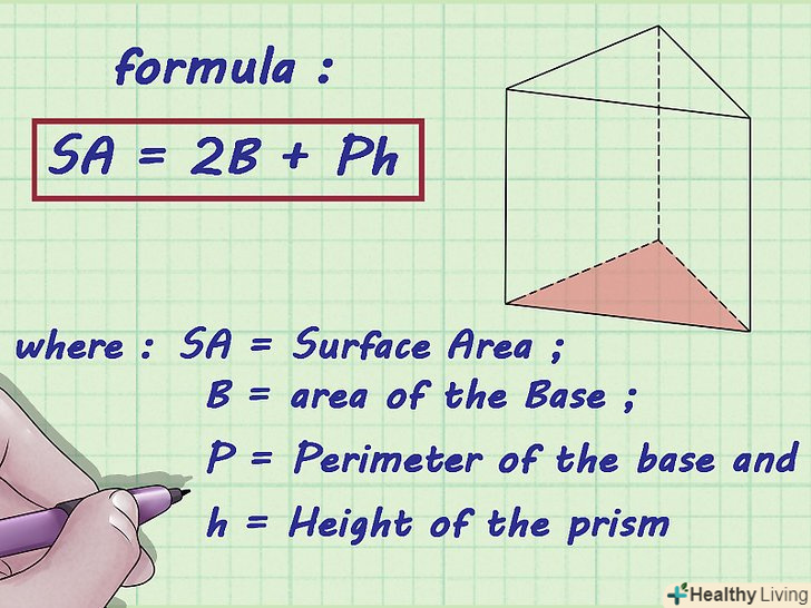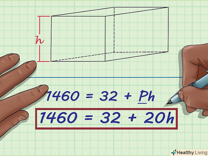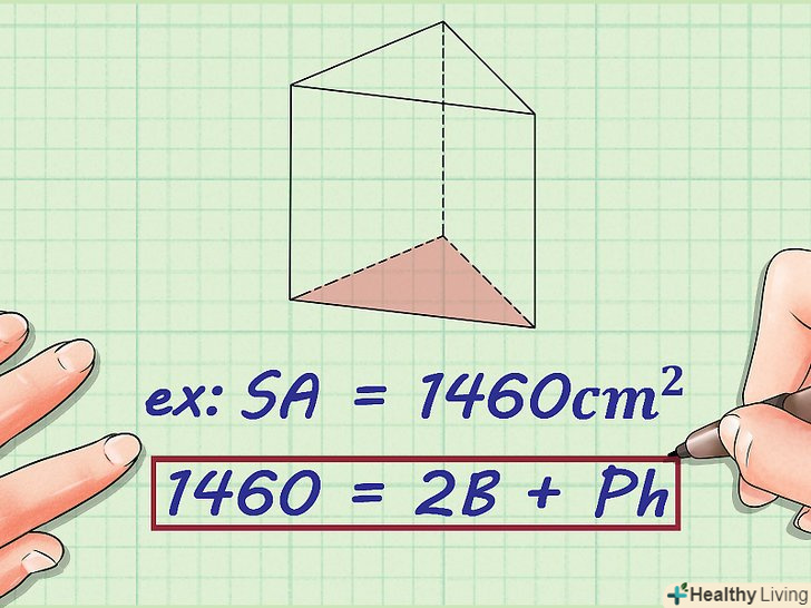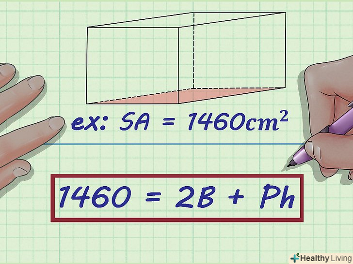 У формулу підставте площу поверхні.якщо площа поверхні не дана, цей метод використовувати не можна.- Приклад: площа поверхні призми дорівнює 1460 квадратних сантиметрів; формула запишеться так: