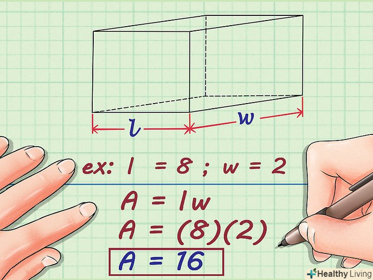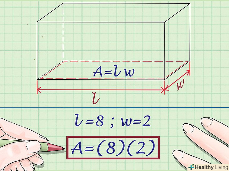 Обчисліть площу основи.для цього потрібно знати довжину і ширину підстави (або одну зі сторін, якщо підстава являє собою квадрат). Щоб обчислити площу прямокутника, скористайтеся формулою.