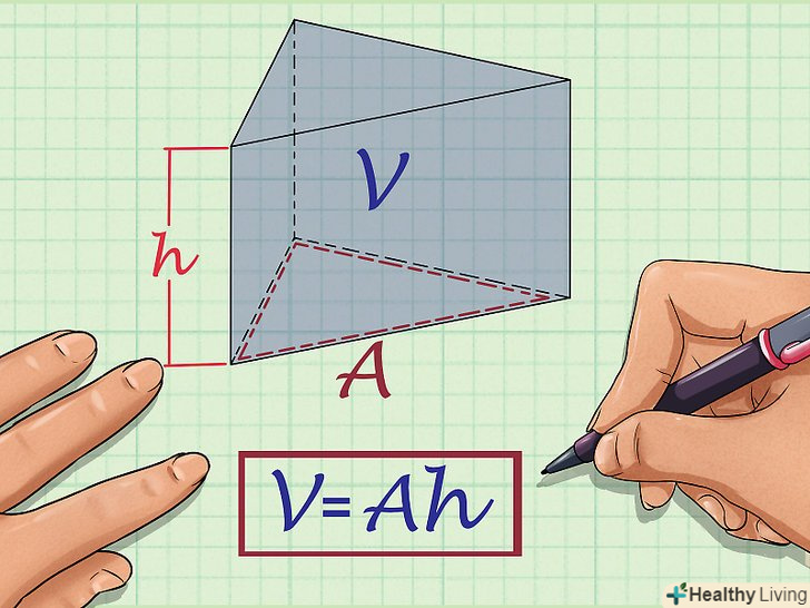 Запишіть формулу для обчислення об'єму призми. Об'єм будь-якої призми можна обчислити за формулою,[3] де