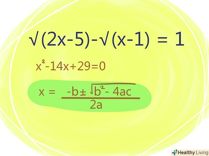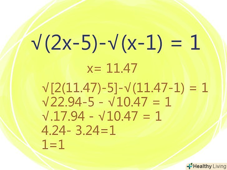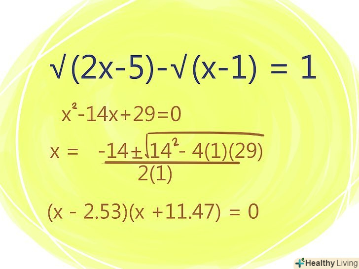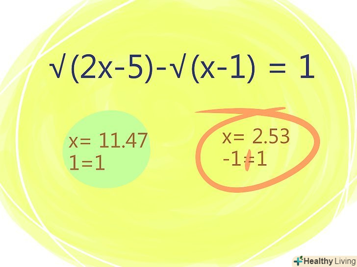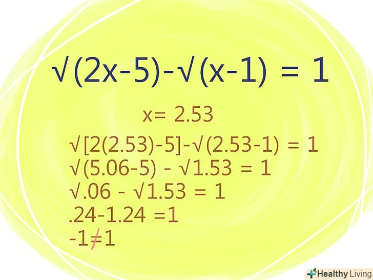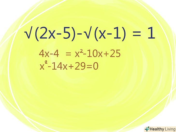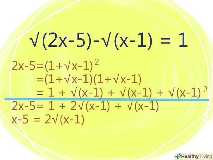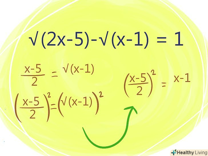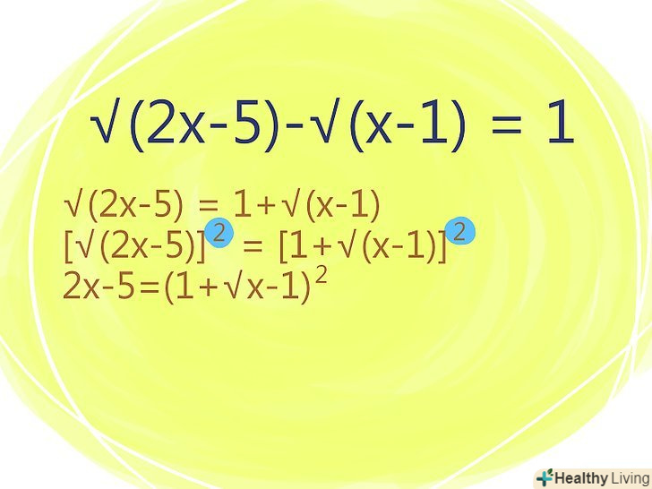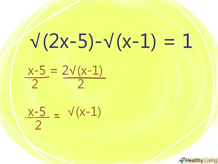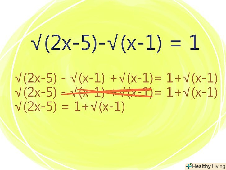 Відокремте один з коренів на одній стороні рівняння.- У нашому прикладі: √(2x-5) = 1 + √(х-1)