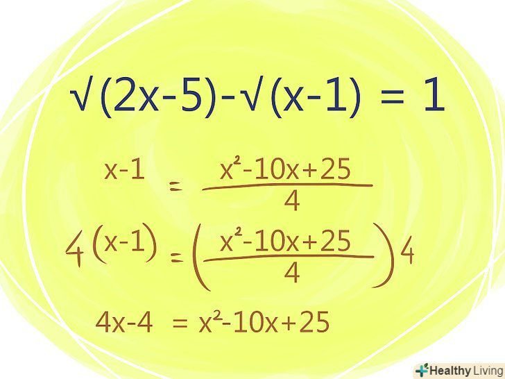 - Зведіть обидві сторони рівняння в квадрат, щоб позбутися від залишився кореня.