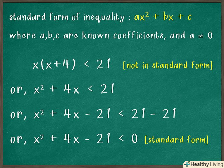 Запишіть нерівність у стандартній формі.стандартна форма квадратної нерівності являє собою наступний тричлен:, де