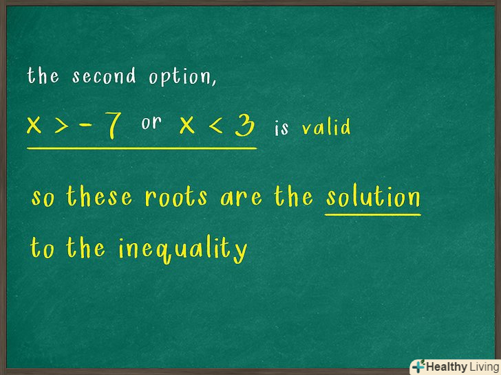 , що задовольняють обом коріння. Запитайте себе, чи є число (а), більше -7 і менше 3? Таких чисел кілька (наприклад, 0), тому знайдені корені дійсні і є вирішенням вихідної нерівності.