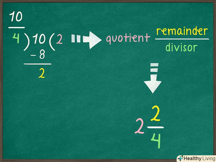 Дріб-це число, яке являє собою частину цілого числа (цілої величини). Якщо чисельник дробу більше знаменника, вона називається неправильною дробом і може бути спрощена до змішаного числа, яке включає цілу і дробову частини. Немає нічого незвичайного в неправильному дробу, а в деяких випадках з таким дробом легше працювати, ніж зі змішаним числом. Але в повсякденному житті змішаними числами ми користуємося частіше, ніж неправильними дробами[1], тому корисно знати, як перетворити неправильну дріб в змішане число.