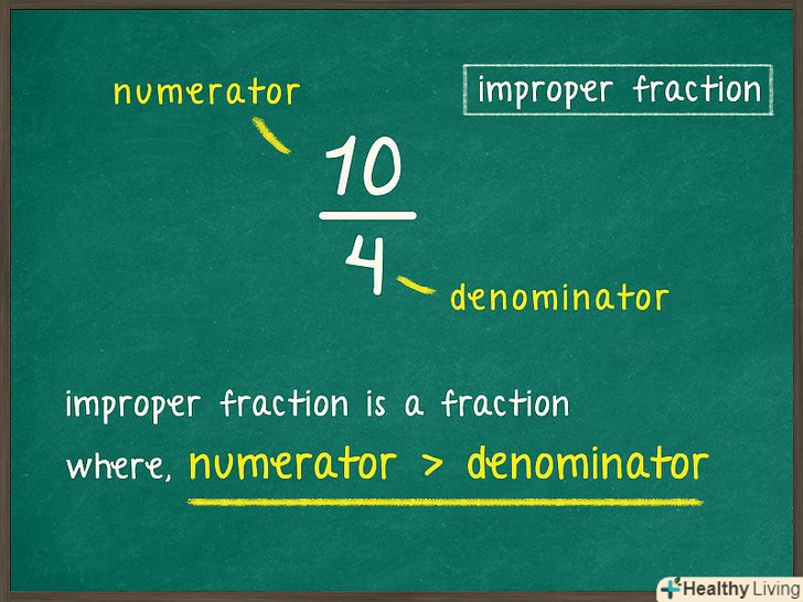 З'ясуйте, чи є дріб неправильним. у неправильної дробу чисельник більше знаменника.[2]- Наприклад, дріб