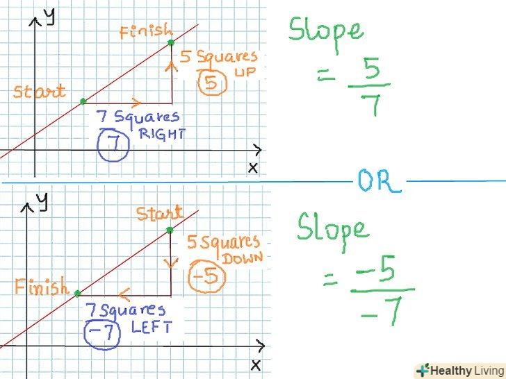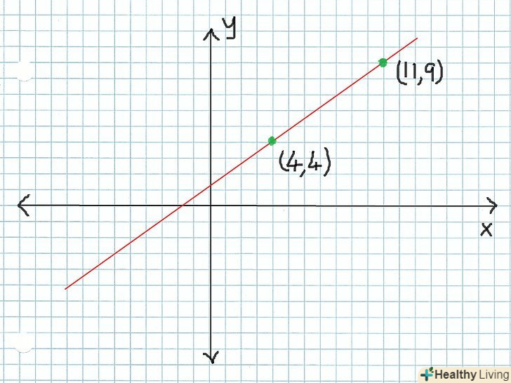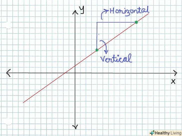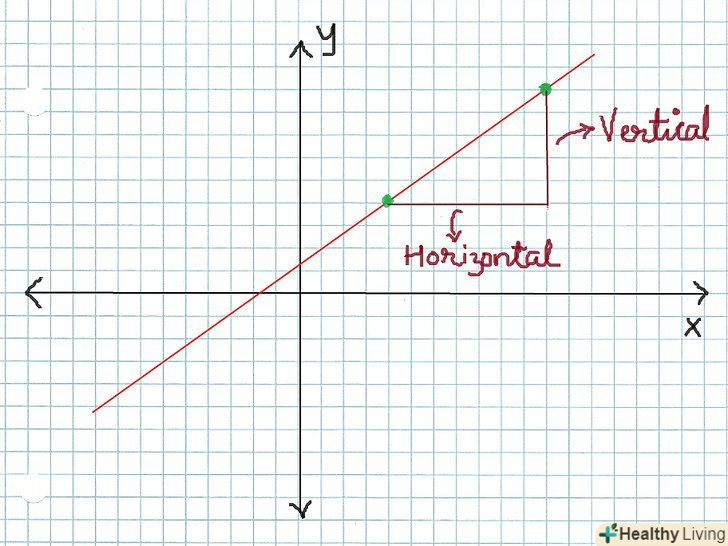 Через точки проведіть прямі, паралельні осі Х і осі Y.- Точки перетину цих прямих будуть лежати над і під графіком, утворюючи два прямокутних трикутника. Розгляньте будь-який з цих трикутників.