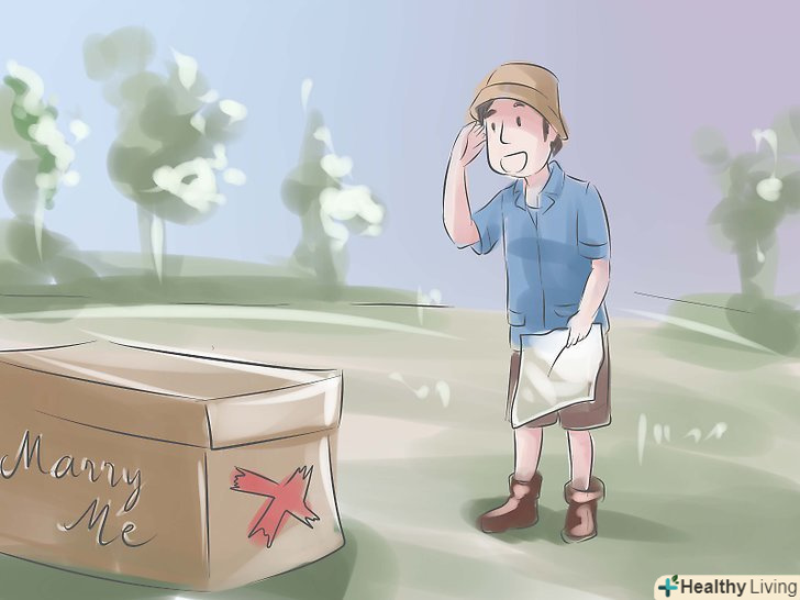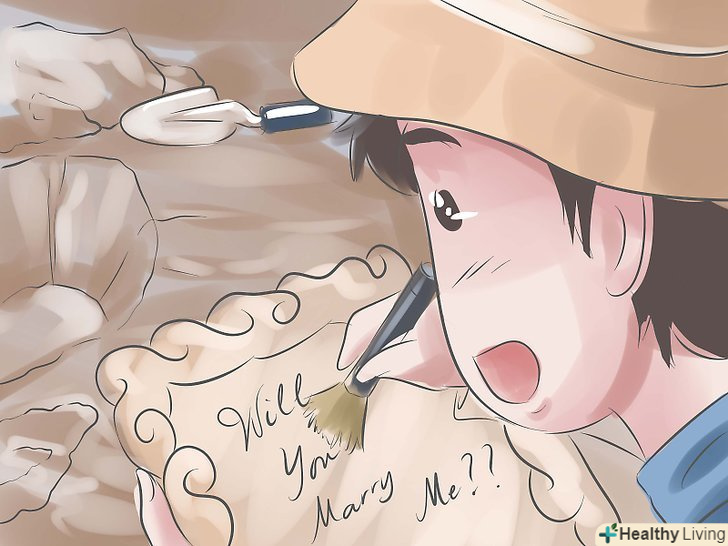 Використовуйте його хобі.знову ж таки, коли ви думаєте про те, як запитати його, Подумайте про його захоплення та інтереси та використовуйте їх як спосіб зробити пропозицію особливим. Це не тільки покаже, що він важливий для вас (так як ви, врешті-решт, просите його одружитися на собі), ви також показуєте, що Ви знаєте про його інтереси, і що ви їх підтримуєте.[5]- Наприклад: якщо він цікавиться археологією, Запропонуйте стати добровольцем для археологічних розкопок з ним і зробіть пропозицію на розкопках (ви можете заручитися вашими колегами-добровольцями для надання допомоги). Або ви могли б навіть зробити пропозицію у вигляді полювання за скарбами і попросити його викопати пропозицію на задньому дворі.