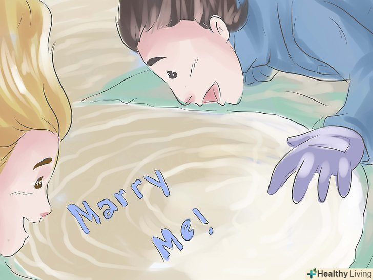 Зробіть пропозицію за допомогою екстремального спорту.Очевидно, це не для всіх, але якщо ви і ваш хлопець профі в екстремальних видах спорту, це відмінний спосіб, щоб задати питання. Вам, ймовірно, буде потрібна допомога ваших друзів або інструкторів, тому переконайтеся, що вони не видають гру заздалегідь!- Стрибніть з парашутом разом з вашим хлопцем, і попросіть ваших друзів, щоб вони зробили внизу напис, в якій просили б його одружитися на вас.