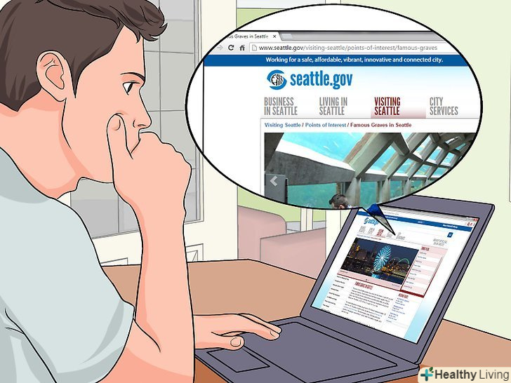 Зв'яжіться з кладовищем. визначивши розташування кладовища, на якому похована потрібна людина, ви можете знайти його розташування в Інтернеті. Багато кладовищ мають онлайн-карти могил, що полегшує пошук конкретного місця поховання. У деяких містах також існують карти кладовищ, так що ви зможете скористатися міським пошукачем.[18] якщо у кладовища немає веб-контактів, а вказано тільки номер телефону, спробуйте зателефонувати і запитати про місцезнаходження могили.- Крім того, навіть якщо вам не вдасться визначити конкретне розташування могили по телефону, Ви зможете підтвердити факт того, що поховання людини дійсно розташоване на цьому кладовищі. Дізнайтеся про це у доглядача кладовища або в офісі адміністрації, які доступні, як правило, в робочі години з Понеділка по п'ятницю.
