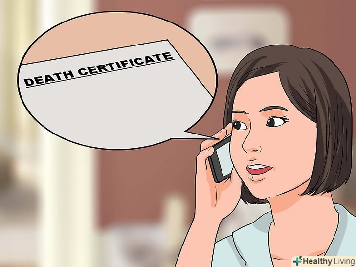 Зв'яжіться з міським відомством, щоб отримати свідоцтво про смерть.якщо у вас виникли проблеми з пошуком цієї інформації, в кожній області існують підрозділи для зберігання цих даних. Ви можете запросити копію свідоцтва в цих відомствах, і вам нададуть інформацію про дату і причини смерті. Ймовірно, за копію свідоцтва про смерть візьмуть невелику плату.[8]- У деяких випадках, в залежності від міста і країни проживання, вам доведеться довести приналежність до сім'ї загиблого, оскільки в деяких державах записи актів цивільного стану, що включають в себе і свідоцтва про смерть, конфіденційні. Наприклад, в штатах Арізона, Оклахома і Нью-Гемпшир записи актів мають закритий статус, хоча для деяких шукачів робляться винятки, наприклад для укладачів генеалогій або співробітників нафтових, газових і мінеральних компаній. Вам необхідно буде представити докази ваших відносин з померлим за допомогою юридичних або судових документів, наприклад свідоцтва про шлюб, народження і так далі.[9]