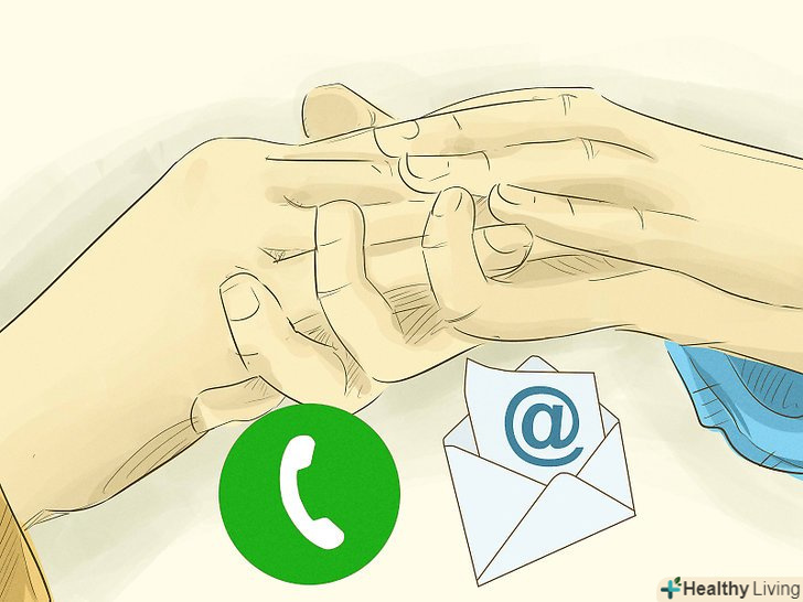 Телефонуйте або відправляйте повідомлення по електронній пошті якомога частіше.регулярно підтримуйте зв'язок зі скорботною людиною. Будьте поруч не тільки під час похорону, а й після, коли скорботна людина відчуває самотність і смуток. Відзначте в своєму графіку кілька днів протягом тижня, коли ви зможете зателефонувати або відправити повідомлення людині, яка втратила Близького.[4]- Людина, яка втратила Близького, відчуває самотність, особливо коли залишається вдома один у вихідні дні. Тому будьте підтримкою для нього в такі дні.