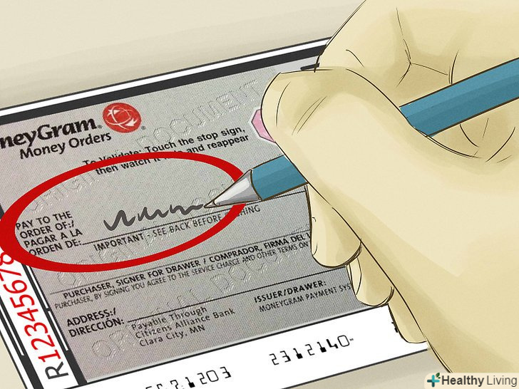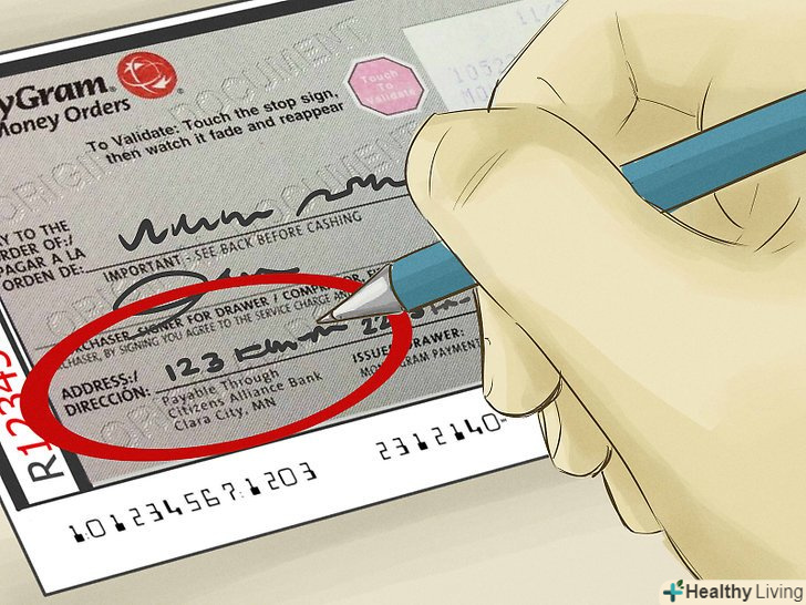 - Перевірте справжність розпорядження. Логотип Moneygram повинен бути видно на звороті, якщо тримати чек під кутом. Крім того, можна зателефонувати безпосередньо в Moneygram по телефону 1-800-542-3590.