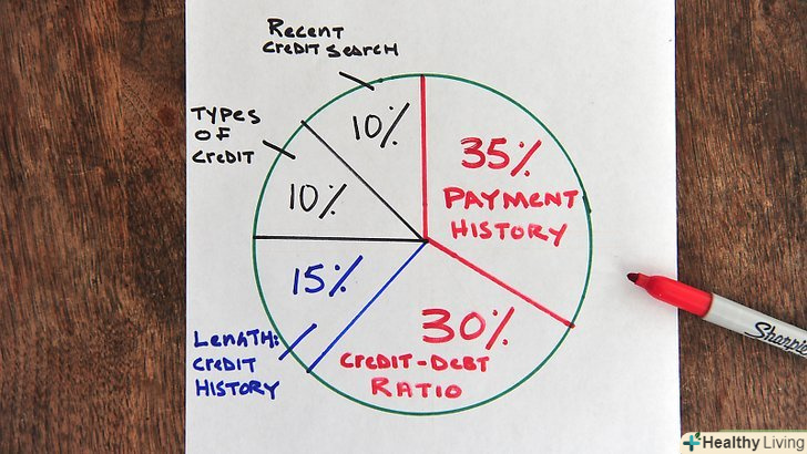 Дізнайтеся свою оцінку FICO.Свою оцінку ви можете знайти в своєму кредитному досьє, так що для початку заручіться копією цього документа. У США існують три основних агентства з оцінки кредитоспроможності: Experian, EquiFax, і TransUnion.Вам необхідно запросити копію свого кредитного звіту у всіх трьох агентств, так як інформація в кожному може злегка відрізнятися. Всі три агентства використовують кредитну оцінку, але FICO властива тільки Experian і TransUnion. Для отримання безкоштовної копії свого кредитного звіту у всіх трьох агентств ви можете відвідати веб-сайт AnnualCreditReport.com (веб-сайт керований Central Source LLC, спільною компанією, створеною агентствами Equifax, Experian, і TransUnion), або зателефонувати за номером «1-877-322-8228."Ви також можете безпосередньо зв'язатися з агентствами. Майте на увазі, що кредитні звіти самі по собі безкоштовні, але компанії запитують $6-8 за кредитну оцінку FICO.- Особлива примітка: в силу питань безпеки ви не зможете отримати доступ до безкоштовного і миттєвого звіту на сайті AnnualCreditReport.com якщо ваш IP адреса знаходиться за межами США.