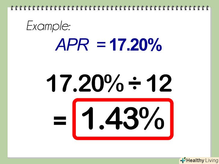 Розділіть річну процентну ставку на 12, щоб отримати місячну ставку по карті.