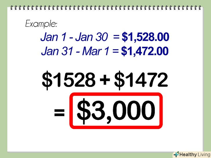 Підведіть підсумковий денний баланс, враховуючи ставку по кредитній картці, за всі дні звітного періоду.- Деякі організації, що випускають кредитні картки, пропонують обмежений пільговий період, в який нові покупки не збільшують розмір виплат за відсотками. Не враховуйте баланс у пільговий період у своїх обчисленнях. Пільговий період, як правило, застосовується тільки в разі. Якщо ви повністю витратили весь баланс карти; дізнайтеся про договір по своїй карті або зателефонуйте в компанію, що випустила карту, щоб зрозуміти, чи є в договорі інформація про пільговий період.