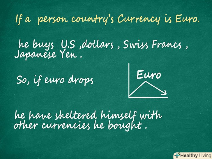 Обмінюйте деякі суми вашої національної валюти на іноземну.один з найпростіших способів хеджування-це купувати іноземну валюту. Наприклад, якщо ви живете в країні, де використовується Євро, ви можете купити американські долари, Швейцарські франки або японську ієну. У разі якщо курс євро впаде по відношенню до інших валют, ви не будете в збитку, так як вже купили ту валюту, яка виросла в ціні.