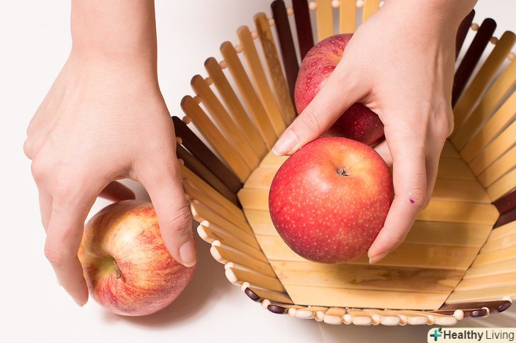 Виберіть яблука без видимих пошкоджень.[1] огляньте яблука і приберіть ті, які мають пошкодження або м'які місця від тих, що знаходяться в ідеальному стані. Через одного поганого Яблука можуть згнити всі інші, адже при розкладанні яблуко виділяє велику кількість етилену. Тому не можна зберігати пошкоджені яблука з цілими.