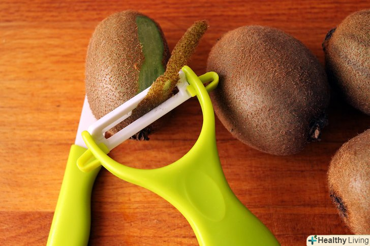 При підготовці ківі дістаньте м'якоть ложечкою або зніміть шкірку овощечисткой або ножем для овочів. ківі також можна нарізати.