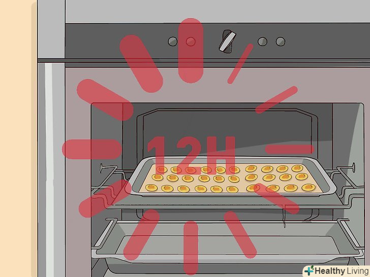 Зачекайте 10-12 годин. перевертайте половинки, щоб вони добре просохли. Коли абрикоси будуть готові, вони стануть трохи жорсткими.- Час приготування може варіюватися. Все залежить від розміру фруктів і температури в духовці. Звичайно, сушка менше часу займе, якщо сушити при 79С, ніж 64С.