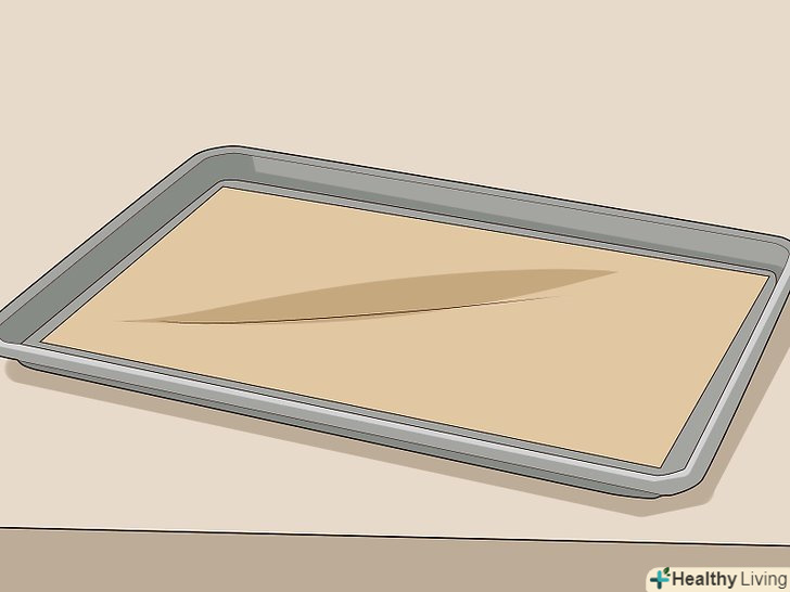 Застеліть деко пергаментним папером. Якщо є велика решітка, то краще її поставити над листом, так можна скоротити час сушіння. [3]