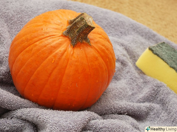 Очистіть гарбуз повністю перед обробленням. це перешкоджатиме бактеріям потрапити всередину, перш ніж ви закінчите розрізати його. Обережно вимийте зовнішню сторону гарбуза злегка теплою мильною водою і перевірте, щоб ваші інструменти були чистими.