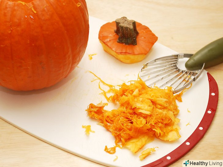 Вичистіть внутрішню частину гарбуза повністю. це видалить всі клейкі частини, які схильні до цвілі і розпаду. Використання інструментів, які продаються спеціально для обробки гарбуза, не обов'язково продовжать життя вашої гарбузі, але гострі інструменти роблять більш чисті розрізи, які допоможуть їй зберегтися довше. Рвані краї утворюють поверхні більшою площею для розмноження бактерій, що викликають гниття, а також занадто багато непотрібних розрізів буде товкти і пом'якшувати гарбуз.- Товщина гарбуза не впливає на швидкість її гниття. Тому якщо ви випадково виріже занадто великий шматок, це не роз'їсть її.