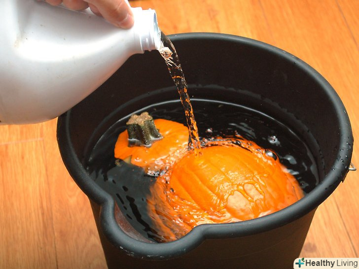 - Використовуйте приблизно 1 ст.л. (15 мл) відбілювача на 1 кварт (946 мл) води. Деякі професійні різьбярі гарбуза використовують лимонний сік, замість розведеного відбілювача; використовуйте розчин з розрахунку 50/50 лимонного соку і води.
