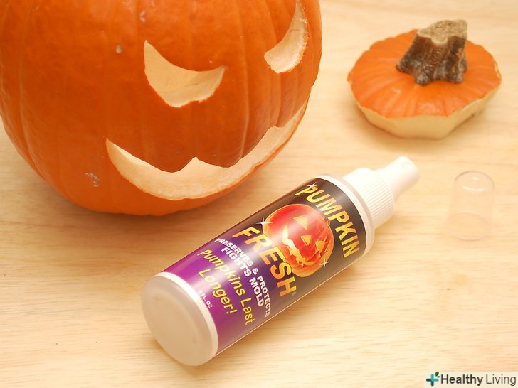 Збризніть гарбуз зовні, всередині і робіть надрізи по поверхні, використовуючи спеціальні засоби для збереження гарбуза. ці засоби для збереження, які є альтернативою вазеліну, відбілювача і лимонного соку, зазвичай можна купити там, де продаються гарбуза. Вони спеціально призначені для того, щоб світильник-Джека, який піддався карвінгу, залишався свіжим.- Якщо ви вибираєте засіб свіжа гарбуз, то вам знадобиться дві пляшки. Ви витратите їх в два рахунки. Спеціальні засоби, за кількома дослідженнями, в своїй дії схожі з відбілювачем або навіть перевершують його функції. [2]