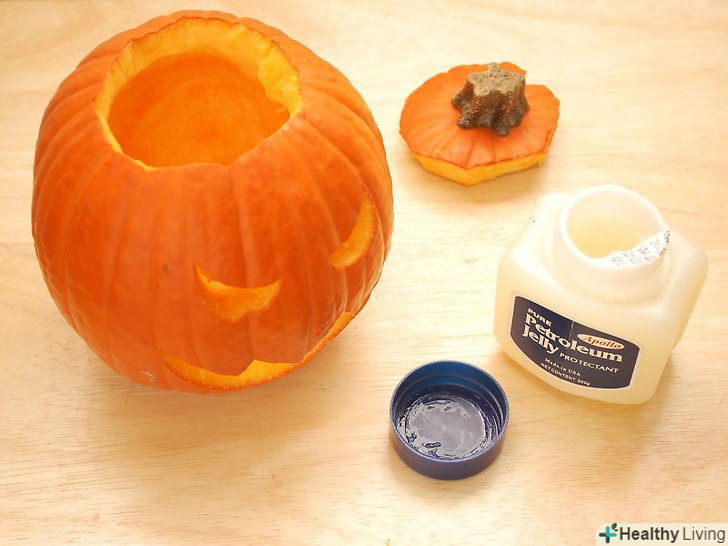 Натріть місця зрізів на вашій гарбузі тонким шаром вазеліну. цей метод краще працює, коли ви проводите його після того, як гарбуз вбере Водний розчин, так як він допомагає запечатати вологу. Якщо гарбуз ставати збезводненої і виглядає немов висохла, то замочіть її в холодній воді знову і повторіть процедуру з вазеліном. Гарбуз можна замочувати протягом не більше 8 годин.- Вазелін можна замінити рослинним маслом. Так чи інакше, знайте, що цей метод отримав досить змішані відгуки.