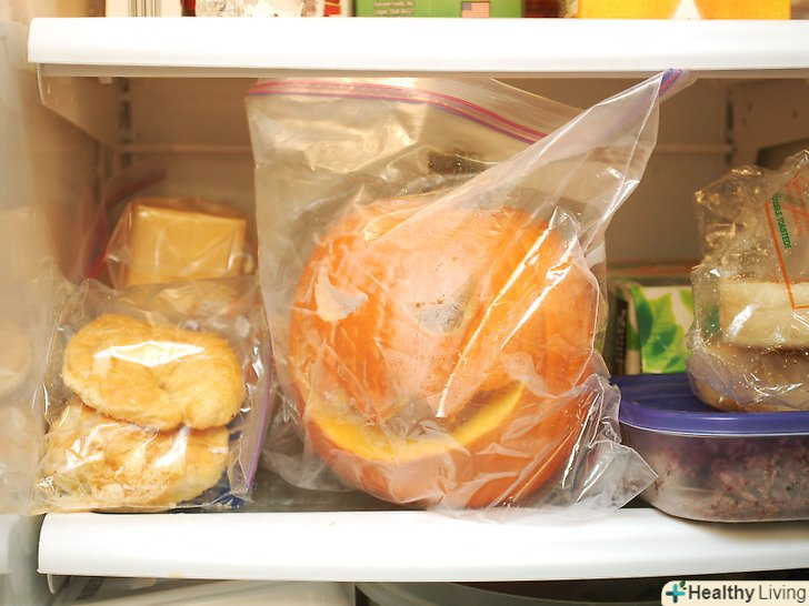 Помістіть свою гарбуз в холодне місце. ідеальна температура для зберігання гарбузів становить 35-40 градусів за Фаренгейтом (2-5 градусів за Цельсієм). Якщо ви живете в холодному кліматі, то можете зберігати гарбуз на відкритому повітрі (і не на сонці). У більш теплих широтах обгортання гарбуза харчовою плівкою і зберігання її в холодильнику допоможе оберегти її від гниття, до тих пір, поки ви не захочете її продемонструвати. Ні в якому разі не дайте своїй гарбузі заморозитися, так як заморожена гарбуз ставати м'якою вже через кілька годин.- Незалежно від того, що ви робите, просто переконайтеся, що температура суха і стабільна – це два найбільш важливих фактори.