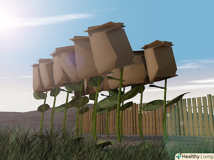 Накрийте головку паперовим пакетом.закріпіть коричневий паперовий пакет навколо соняшника за допомогою мотузки, нитки або волосіні.- Не використовуйте поліетиленові пакети. Пластик не дасть голівці квітки "дихати", всередині пакета почне в надлишку накопичуватися волога. Якщо це станеться, насіння почнуть пліснявіти і стануть непридатними до вживання.