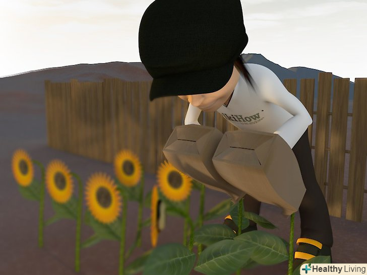 Зав'яжіть паперовий пакет навколо головки квітки. [2] накрийте головку паперовим пакетом, вільно підв'яжіть його мотузкою або ниткою, щоб він не злетів.- Ви також можете використовувати марлю або схожий, пропускає повітря, матеріал, але ніколи не використовуйте поліетиленовий пакет. Пластик зупинить циркуляцію повітря, насіння почнуть накопичувати вологу. Якщо вологи буде занадто багато, насіння почнуть гнити або пліснявіти.
