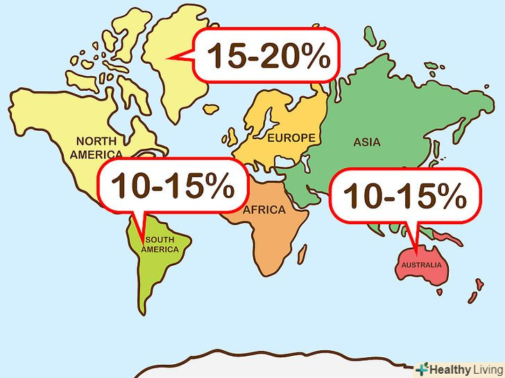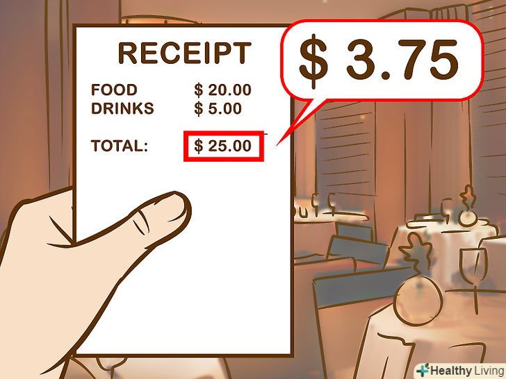 - Щоб обчислити 20% від загальної суми рахунку, посуньте десяткову крапку на суму рахунку вліво. Округливши. Наприклад, 3584 рубля можна округлити до 3580. Пам'ятайте, що потрібно знову ж обчислити 10%, але потім подвоїти суму.