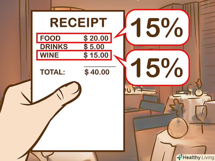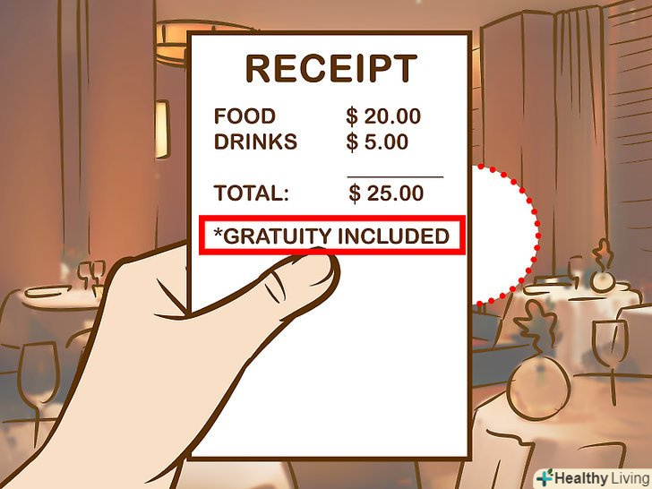 Перевірте, чи не включені чайові в суму рахунку.у деяких ресторанах чайові заздалегідь включаються в суму рахунку. В такому випадку, не варто залишати Додаткові чайові.- Зазвичай чайові складають від 15 до 18 відсотків, якщо вони включаються в суму рахунку автоматично. У деяких ресторанах чайові включаються в суму рахунку, коли замовлення оформляється на велику групу людей. В такому випадку, в меню буде зазначено:»чайові включені".