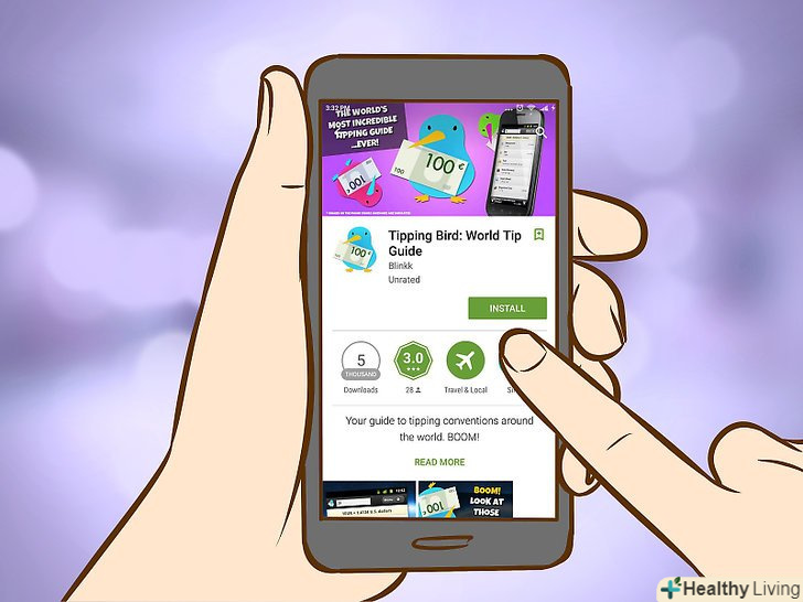 Скористайтеся спеціальним додатком.завантажте додаток на свій смартфон, який сам розрахує чайові від загальної суми рахунку, яку потрібно буде ввести.- Більшість смартфонів оснащені функцією калькулятора, який дозволить розрахувати суму чайових самостійно (в залежності від суми, яку ви збираєтеся залишити).