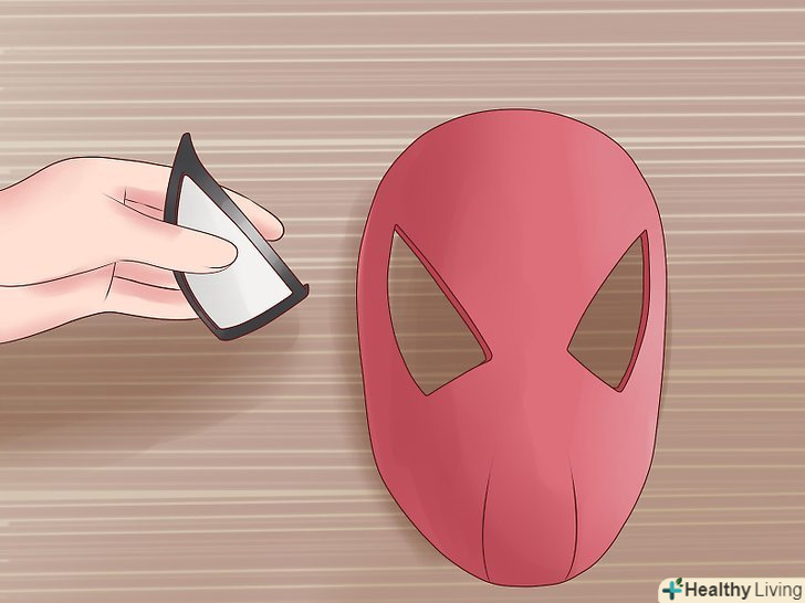 Виготовте маску Людини-павука з нуля, взявши за основу червону маску з спандекса.перенесіть контури очей на маску і виріжте зайвий матеріал, щоб отримати прорізи-очниці. Потім закрийте отримані отвори тонкою білою сіткою і додатково викрийте контури очниць з чорного фоамірана, щоб підкреслити очі. Наклейте фоаміран на маску таким чином, щоб Біла сітка виявилася затиснутою між ним і маскою. Цей крок дозволить приховати ваші очі під маскою, при цьому ви все ще зможете бачити через неї.[14]- Простежте за тим, щоб купується вами маска була абсолютно цілою без будь-яких заздалегідь підготовлених отворів для очей або рота.